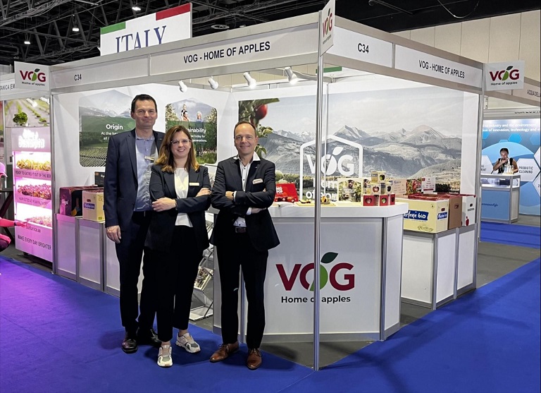 “The Dubai show was a great opportunity to dialogue and align with the market,” concludes Klaus Hölzl, VOG Sales Manager. “Even if our main focus remains Europe, the Middle East is a priority export market for us because of its proximity and strategic importance. In addition to our organic products, in these areas we have also enjoyed lots of success with integrated farming brands like Marlene®, Pink Lady® and Kanzi®, and are introducing the new Giga® and RedPop®.”